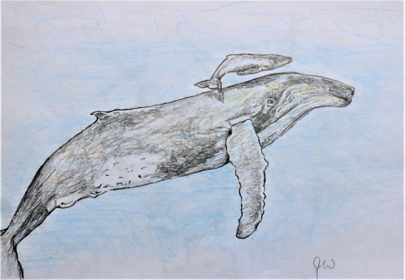 Buckelwal mit neugeborenem Baby  Zeichnung: Georg Wübbolt