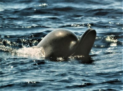 Ein weiterer Grund könnte sein, daß in dem Halbwüstenklima der Lagunen mehr Wasser verdunstet als auf dem offenen Meer. Dadurch erhöht sich der Salzgehalt und unterstützt so das Auftreiben des Babys direkt nach der Geburt. Es wird immer mit dem Schwanz zuerst geboren. Das ist natürlich sinnvoll, denn sonst würde es während des ganzen Geburtsvorgangs unter Wasser nicht atmen können. Sobald das Kleine heraus ist, treibt es wie von selbst nach oben für seinen ersten Atemzug.