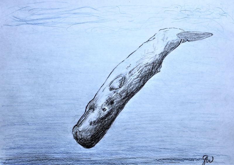 Dieser Pottwal geht kopfüber auf die Jagd  (Zeichnung: Georg Wübbolt)