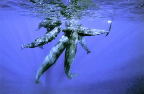 In den karibischen Gewässern nördlich der Dominikanischen Republik gibt es eine recht gut erforschte siebenköpfige Pottwal-Familie. Forscher haben ihren Mitgliedern Namen gegeben: Mysterio, Pinchy, Tweak, Enigma. Die Gruppe lebt und jagt gemeinsam. Manchmal verteilen sie sich über viele Kilometer. Aber sie bleiben so gezielt in Kontakt, daß sie sich alle an einer Stelle im Meer wieder treffen.